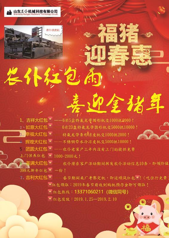 为迎接2019金猪年的到来,让更多的朋友用上农仆凉皮机;山东农仆机械科技有限公司现隆重推出七重购机大红包,手慢无——